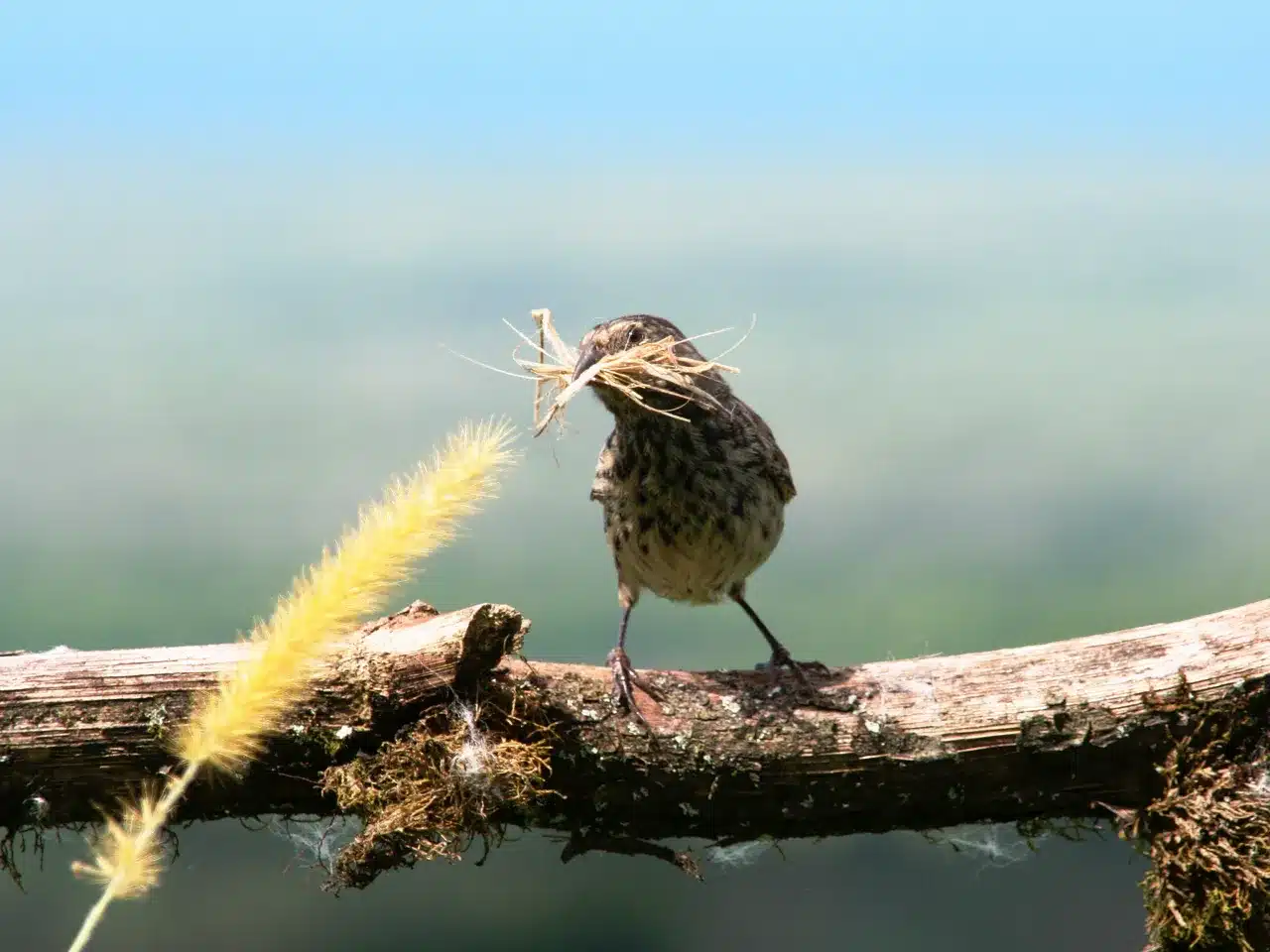 A Galapagos finch chooses the head of a staff member to survey the scene